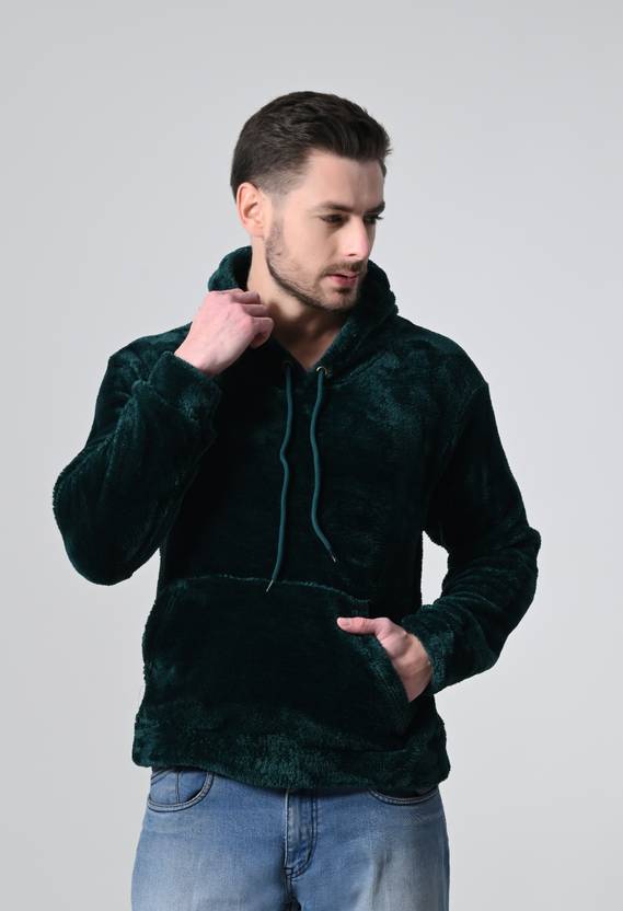 Men's Plush Fur Hoodie with Kangaroo Pocket, SIZE CHART: S, Ch:-39, L:-25, Sh:-18.5|| M Ch:-40, L:-26, Sh:-19|| L Ch:-42, L:-27, Sh:-19.5|| XL Ch:-44, L:- 28, Sh:-20