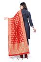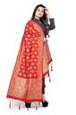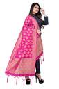 Material: High-quality woven jacquard fabric, Length: 2.25 meters, Pattern: Floral print with intricate detailing, Weave: Golden zari work for a luxurious finish, Occasion: Perfect for weddings, festive celebrations, and special occasions, Care Instructions: Dry clean only for long-lasting beauty, Style Tip: Pair with traditional Indian attire like sarees, salwar kameez, or lehengas for a stunning look, Availability: Limited edition, exclusive design, Make a statement with this exquisite dupatta that embodies the rich heritage and craftsmanship of Indian textiles.