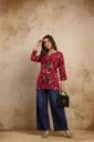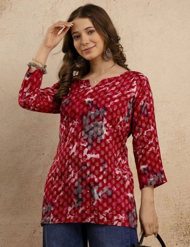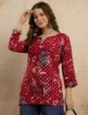 HYTEN Women Floral Print Straight Kurta (Maroon)