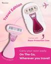 Thanks to its compact size, you can carry the razor in your purse, travel bag, or even a pocket. This feature makes the razor ideal for on-the-go grooming and travel. Due to their small size, this razor is allowed in carry-on bags when flying, ensuring that you can maintain your grooming routine while travelling. Carry this razor for quick touch-ups, whether you're at work, on vacation, or in a public restroom. It comes in handy for removing unwanted hair on the go. The small size and lightweight design of this grooming essentials make it easy to use in various situations without drawing attention.