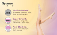 Hyuman Body Razor for Women Hair Removal |With Travel Case | 5-Blade | Aloe & Vit E Bar, Women