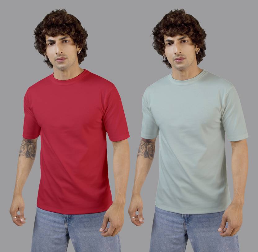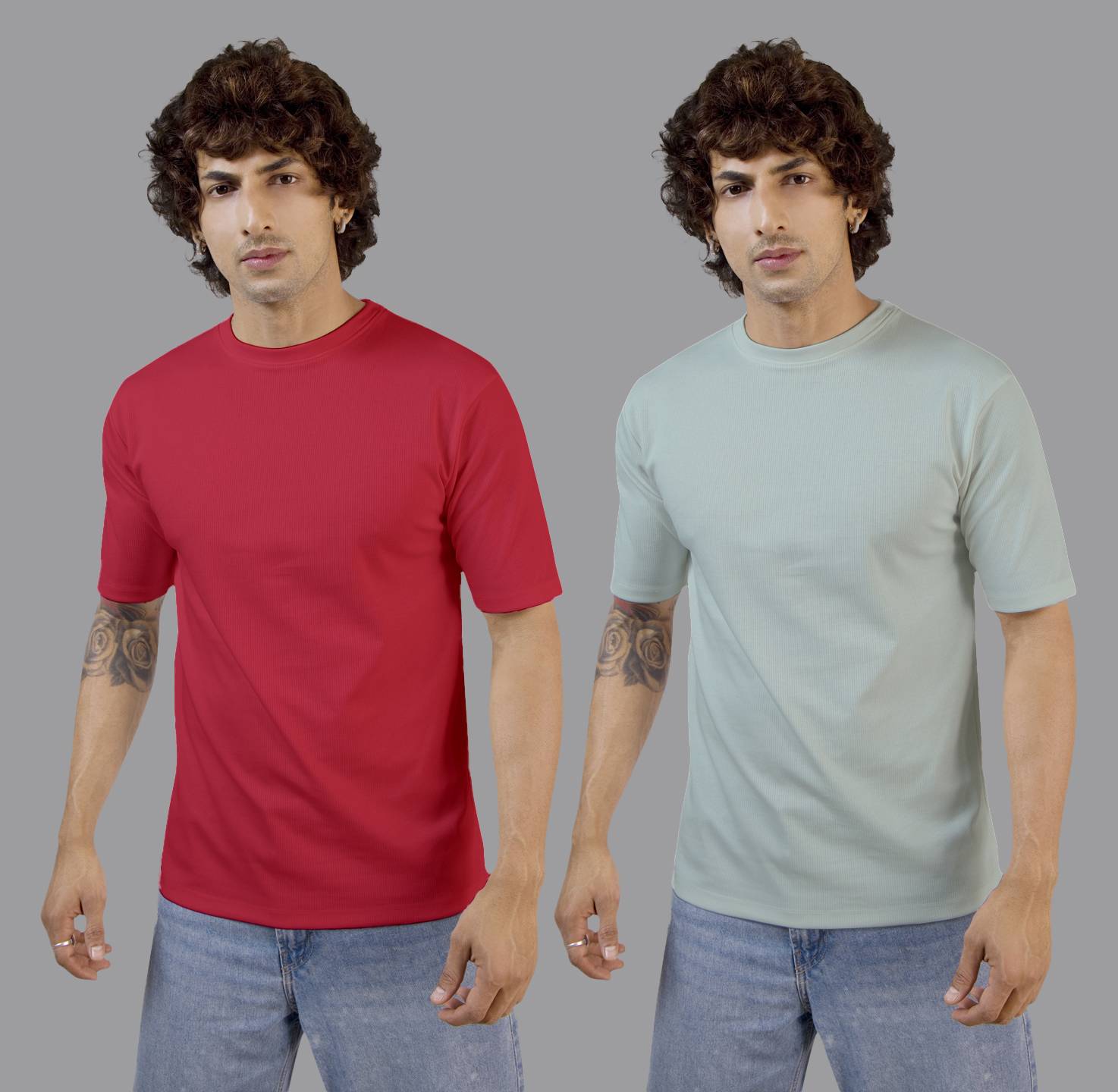 I&D Solid Men Round Neck Green, Maroon T-Shirt