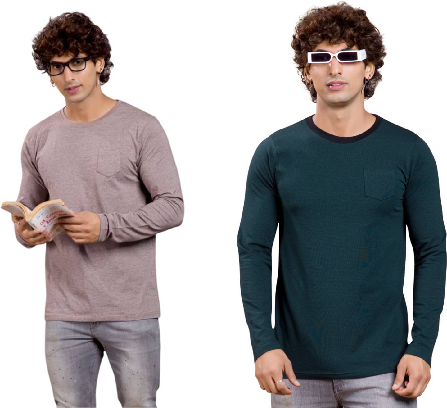 I&D Solid Men Round Neck Multicolor T-Shirt