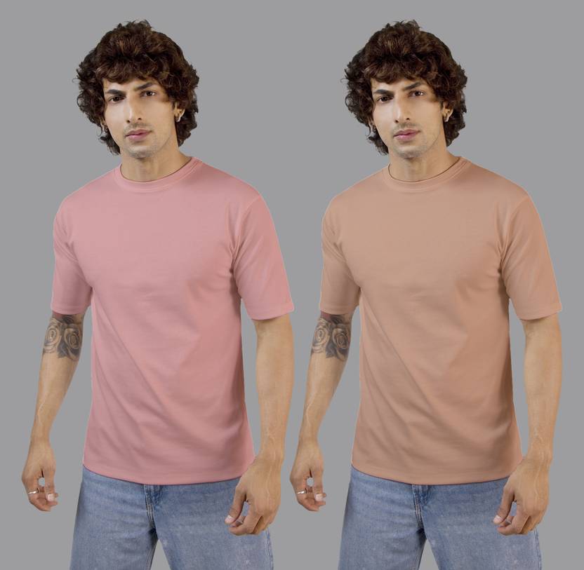 I&D Mens Solid Multicolor Oversized Cotton Lycra Tshirt 220Gsm (Pack of 2)