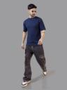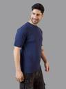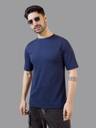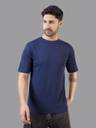 I&D Solid Men Round Neck Navy Blue T-Shirt