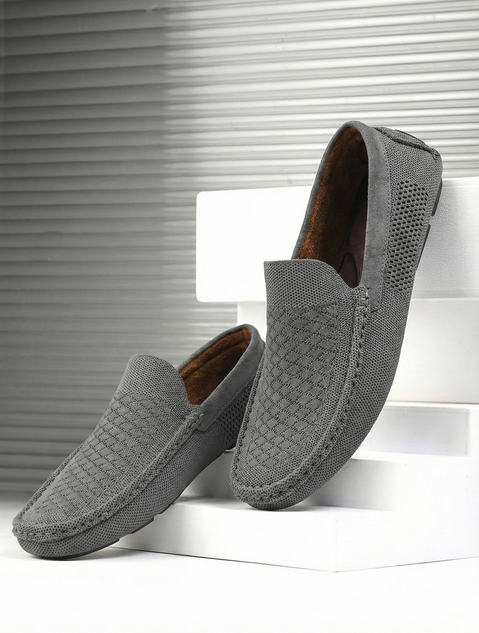 Step out in style and comfort with these men's brown loafers. Crafted with a textured fabric upper and complemented by a sleek metal buckle detail, these slip-on shoes offer a blend of casual elegance and ease. The durable flat sole provides good grip, making them suitable for everyday wear. Perfect for pairing with chinos, jeans, shorts, or casual trousers for a smart-casual look.