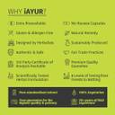 Our R&D team has over 30 years of experience in extract manufacturing, sourcing of raw materials and clinical testing of herbal medicines. We work with ingredients that work best in the body and we are committed to showing exactly where they come from. When you read an iAYUR product label, you know exactly what's going in your body. Nothing more, nothing less. 100% Vegetarian, FSSAI Accredited, GMP Certified, GMO Free, ISO Manufacturing, HACCP certified, Extra Bioavailable, No-nausea capsules, Designed by Herbalists, Premium Quality Guarantee, Honesty Guaranteed, Natural Remedy, 3rd Party Certificate of Analysis available, 8 levels of testing from Forests to Bottling, Fair Trade Practices, Sustainably produced
