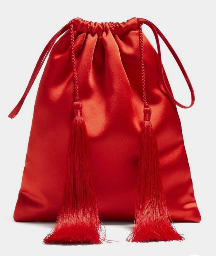 IBDA Bright Red Satin Vintage Stylish Sheer Gift HandBags, Elegant and Attractive, Potli /, Draw String Bags. Potli