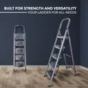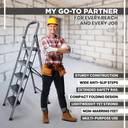 iBELL IBL T005E 5 Step Foldable Ladder with 150 kg Capacity, Wide Anti-Skid Steps Steel Ladder (With Platform, Hand Rail)