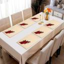 Decorative Table Placemats with Red Rose Embroidery, Beige,