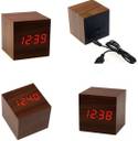 Wooden Digital Electronic Alarm Table Desk Clock with Temperature , Date , Time and Square Display