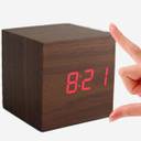 MULTI-FUNCTIONAL: displays date, time (12/24) and temperature (F & C); LED light control by voice; 3 alarm setting; easy to set and programMULTI-FUNCTIONAL: displays date, time (12/24) and temperature (F & C); LED light control by voice; 3 alarm setting; easy to set and program, OMPACT SIZE: small wood alarm clock can be used as desk clock in office, bedroom, living room etc.; also a portable travel clock for it can run with battery or AC power, BRIGHTNESS ADJUSTMENT : 4 options for you to set to make the LED bright or dim, or you can totally turn it down, INNOVATIVE DESIGN : a natural decoration; sleek and minimalist wood cube with large LED screen, clear and bright to read, makes your room looks like 22nd century., KEEPS TIME ACCURATE : digital alarm clock with high quality works perfectly shows time (12/24); wake you up everyday on time; It’s perfect as a gift, especially for kids.