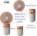 icall Mini Pocket LD8 Hand Fan Build-in Rechargeable Battery for Home, Makeup, Office, Indoor, Outdoor, Travel Rechargeable Fan (Pink, White)