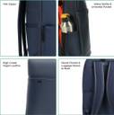 Featuring a dedicated padded laptop compartment, your tech essentials are securely stored, prioritising safety. Merge practicality with convenience through the inclusion of a pen holder and a discreet secret pocket at the back, elevating the functionality of this laptop backpack. The luggage sleeve further enhances travel compatibility, making this backpack an ideal companion for those who value both organisation and convenience in their daily endeavours.