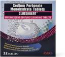 Composition: Each uncoated tablet contains Sodium perborate monohydrate 480mg, Mode of action: Specially formulated to clean all water insoluble residues from dentures that other cleansers may not remove. Clinsodents powerful antibacterial formula kills germs that causes odor and plaque. The baking soda and peroxide formula fight germs and whiten denture while refreshing dentures., Direction for use: Drop one CLINSODENT denture cleansing tablet into enough warm water to cover denture or appliance. Place denture into effervescing blue solution. Leave your denture or appliance in the solution for 30 minutes to completely remove all invisible water insoluble residues. For best results, use once a day. Your denture may be safely soaked in CLINSODENT overnight. Remove and rinse denture or appliance under running water. Dry naturally, Caution: Do not drink the cleansing solution or use it as mouthwash. Keep tablets out of reach of children. Do not put tablet in the mouth.