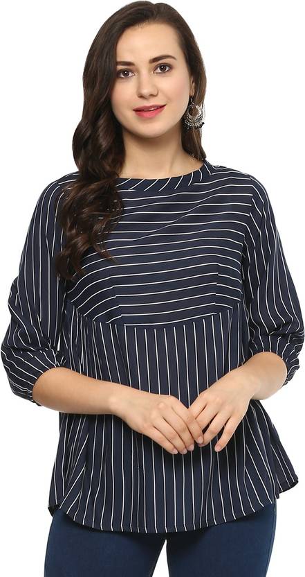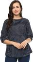 Idalia Casual 3/4 Sleeve Striped Women Dark Blue Top