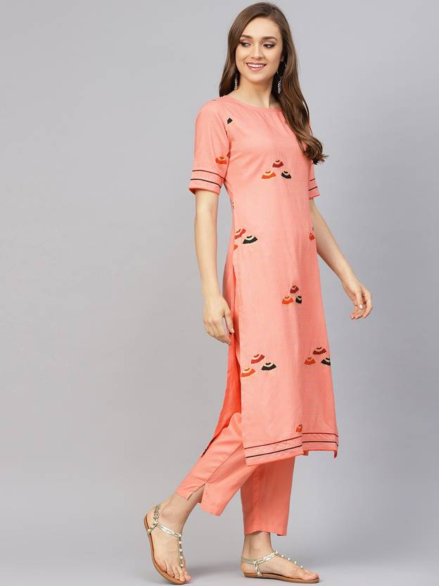 Women Embroidered Viscose Rayon Straight Kurta (Pink)
