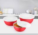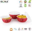 Ideale Steel Grocery Container - 500 ml, 1250 ml, 750 ml (Pack of 3, Red)