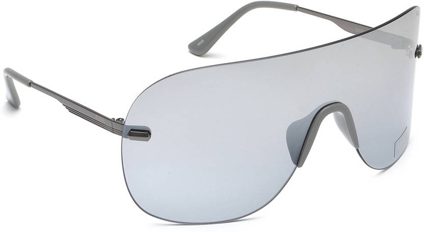 100% UV Protected sunglasses for Men with Shiny Grey-Shiny Dark Gun Polycarbonate Rim-less and White Mirror-Smoke Polycarbonate lens