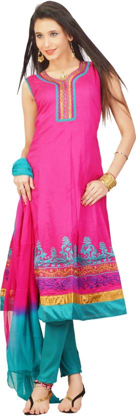 Rani colored churidar suit cotton from the house of idha. This suit looks beautiful it simply adds to your beauty.