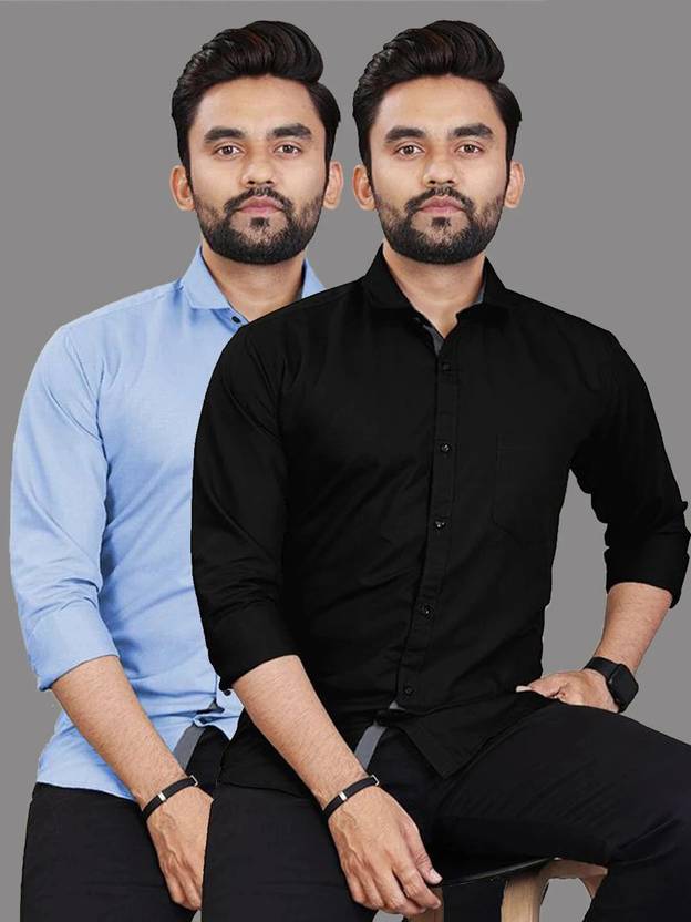 iexira Men Regular, Relaxed Fit Fit Solid Spread Collar Formal Shirt (Pack of 2)