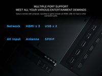 This TV features a strong hardware Quad-core CPU, a Triple-core 600-800 MHz GPU, 2GB DDR3 RAM, and 16 GB of storage. Featuring a built-in stereo box shape, this TV creates a wider and louder range to give you immersive sound using Dolby Audio.