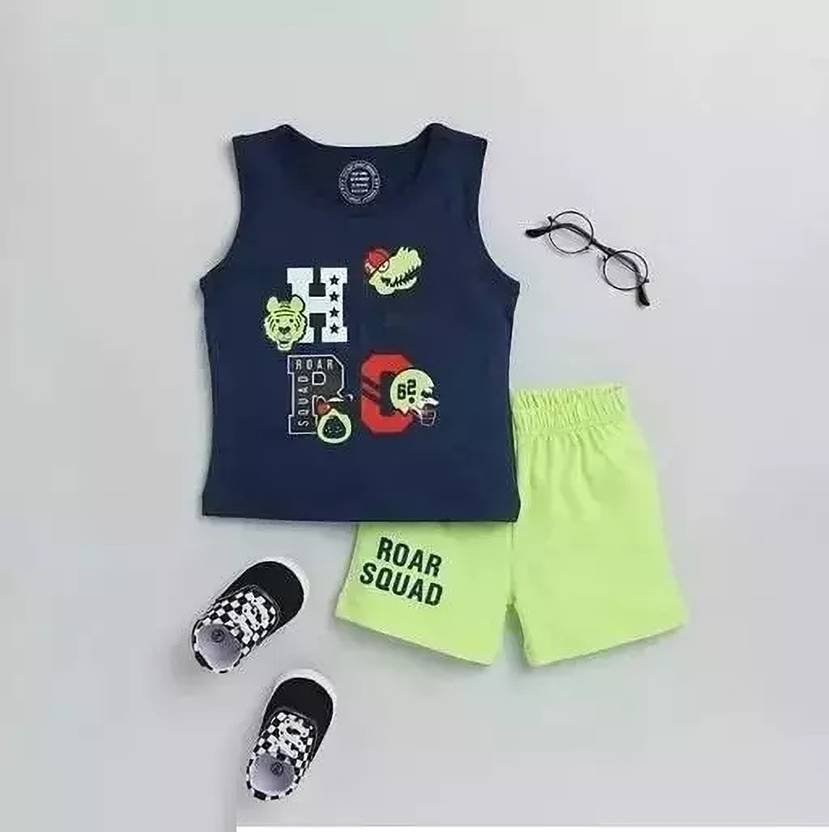 You can treat your youngster to the plush comfort of this casual vest and shorts set, which is carefully made from a cotton and hosiery combination. Particularly for sensitive little ones, the softness of the cloth envelopes their skin in a soothing hug, providing comfort throughout the day. This fabric is designed with children in mind, and because of its velvety feel and improved wearing experience, it is suitable for their everyday wardrobe necessities.