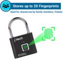 IFITech Smart Fingerprint Padlock, Biometric Lock with 20 Fingerprint Storage, Rechargeable, keyless | Ideal for Homes/Office/Travel (Small) Smart Door Lock (Black)