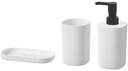 You get all functions you need for your wash-basin; toothbrush holder, soap dispenser and tray.