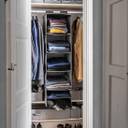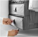 The fabric is made of recycled polyester. Using waste as a resource takes us one step closer to a more sustainable future. The hook and loop fastener makes it easy to hang up and move. It is easier to pull the boxes out of the compartments if you hold on to the strap at the bottom. Takes little room to store as it folds flat.