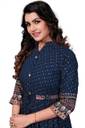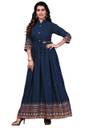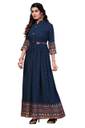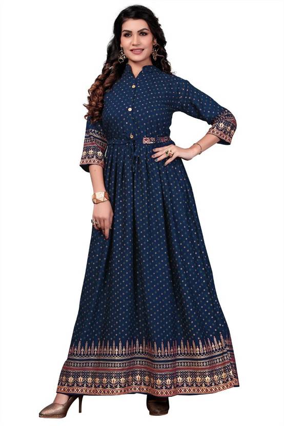 Printed Rayon Blend Stitched Flared/A-line Gown (Blue)