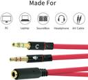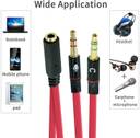 IKIS TV-out Cable 3.5mm CTIA Jack Headset Adapter Mic and Audio Headphone Splitter Cable with Separate Microphone and Headphone Connector for Gaming Headset to PC - 1 Pack (Black & Red, 20 CM) (Red, For Mobile)