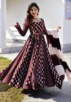 Boasting a viscose rayon gown and a georgette dupatta, this set prioritises comfort without compromising on elegance. The gown’s fabric is soft against the skin and ensures breathability, making it suitable for long hours of wear. The viscose rayon material provides a polished finish, while its lightweight nature allows easy movement. Paired with the georgette dupatta, which adds a touch of sheer elegance, this set combines practicality and style.