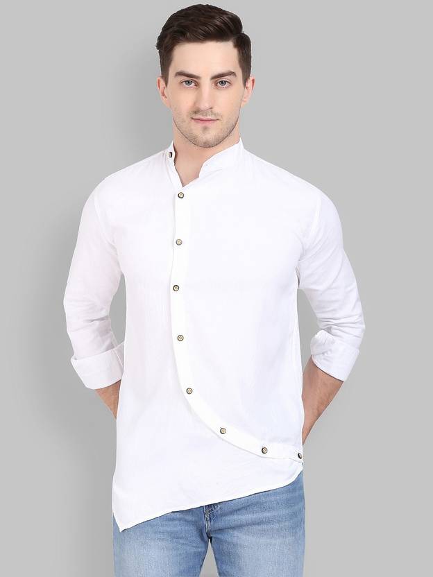 Iknot Men Slim Fit Solid Mandarin Collar Casual Shirt