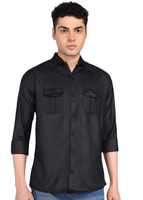 This shirt features up to two flapped pockets, combining style with practicality. The pockets are securely fastened, offering convenient storage for small essentials. Designed with a regular fit, spread collar, button-down style, and full sleeves, it provides a classic, functional look. Moreover, the curved hem adds a subtle touch of flair, creating a balanced and refined silhouette.