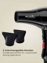 Boasting a robust AC motor boasting 2,400 to 2,800 W of strength, this hair dryer ensures exceptional performance every time. With multiple nozzles including up to two large and up to two small ones, this hair dryer delivers precisely condensed airflow to your desired styling area, thereby making every styling session effortless and efficient.