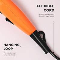 Thanks to its flexible cord with a generous length, ergonomic handle, and lightweight design, this hair dryer can offer enhanced convenience and comfort during use. The integrated hanging loop allows for easy storage, keeping your space organised and clutter-free.
