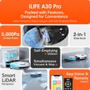 ILIFE A30 Pro Self-emptying Robot Vacuum with LiDAR Navigation @5000Pa Strong Suction Robotic Floor Cleaner with Reusable Dust Bag, Anti-Bacterial Cleaning, 2 in 1 Mopping and Vacuum (WiFi Connectivity, Google Assistant and Alexa) (White)