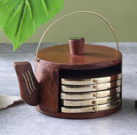 IlluringCraft Square Reversible Wood Coaster (Pack of 6)