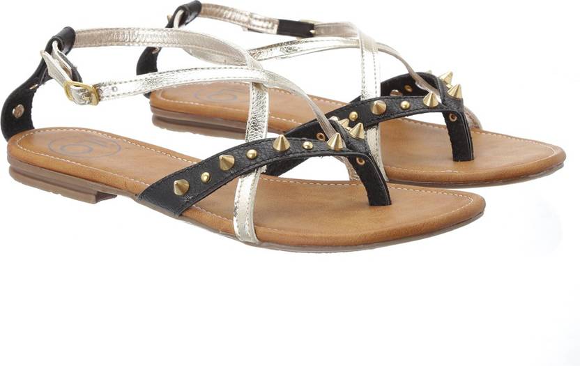 Women Flats Sandal (Black, Gold , 38 Euro)