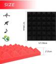 IMAGINEA Acoustic Foams (Set of 18), 50 Density Pyramid Foam Panels, 12" X 12" X 2 Inches Premium Grade Soundproofing Studio Noise, Echo Reduction and Absorption (Red, Black)
