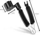 Guitar Tool for Repairing Restringing: 3-in-1 guitar string winder, guitar bridge pin puller and guitar string cutter, making guitar maintenance more convenient and efficient. 3-in-1 Guitar Tool Design: Comfortable handle with high level design, cleanly cuts open old strings and removes them faster and easier. Help you replace your string within a few seconds. String diameters: 1st: 0.007 inch (0.2 mm), 2nd: 0.01 inch(0.3 mm), 3rd: 0.02 inch(0.6 mm), 4th: 0.027 inch(0.7 mm), 5th: 0.039 inch(1 mm), 6th: 0.047 inch(1.2 mm). Quickly and safely remove bridge pins. Versatile Compatibility: This string winder tool is compatible with a wide range of instruments, suit for acoustic guitars, electric guitars, banjos, mandolins, ukuleles, etc. Durable and High-quality Materials: Black guitar tool made from high-strength plastic and stainless steel, this guitar winder tool is built to last. Portable and Convenient: This string winder tool can easily fit into your instrument case, allowing you to carry it effortlessly to any performance stage.