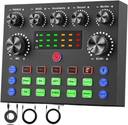 MULTIPLE SOUND EFFECTS & VOICE CHANGE :- 112 kinds of electric sound,18 kinds of sound effects and 6 effect modes The v8 sound card can turn your voice into a woman's voice, a man's voice and a magic sound of Warcraft by pressing the Pitch Bend button. You can cycle by pressing the "Pitch Bend" button to change the sound type you want. MAGIC SOUND CHANGER:- The mini sound mixer can be used for DJ, music studio recording, condenser microphone, karaoke online, podcast, mic, singing, k song, live stream, and YouTube streaming, guitar, Facebook, anchor, voice mixing , home audio interface Sound card board is also a voice changer for gamer who play games online. PLUG AND PLAY, EASY TO SET UP AND USE:- Simple Setting audio interface features for swiftly adjust the volume of your music, mic, Reverb, and tone to your desired level with this Live Streaming Sound card. Compatibility Device compatible with laptop, tablets, smartphone, speaker Wide range of application, suitable for live broadcast, recording song, game, speech conference, etc. MULTI-DEVICE SUPPORT:- 7 kinds of connection methods: live via one mobile phone, live broadcast via two mobile phones, live broadcast via 3 mobile phones, synchronous live broadcast via mobile and computer, live broadcast via one computer, computer accompaniment mobile phone live, instrument input mobile phone live. Multi-device support :– The audio mixer is compatible with IOS and Android mobile phones, Computer, Laptop, Microphone Tablet.