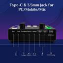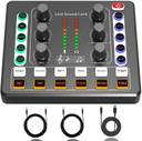 This is a newly upgraded live sound card, it has several major upgrade configurations such as high speed processing, 6 sound push buttons, 16 function buttons and so on, let you live more comfortable. The audio mixer has several modes, such professional mode, popular mode, a key to shout mic, a key electronic music and so on. All kinds of scenarios can be used button operation. Accompaniment:The indicator light flashes when the phone is turned on pairing. Indicator light is always on after successful connection with mini mixer. Intelligent Chip :The mixer adopts upgrade DSP audio chip, it can timely adjust the rhythm, make audio signal clearer, output sound mellow stereo. Dual Port: Dual microphone port design, supports 2 people to live broadcast at the same time, more interactive; Dual live broadcast port design, can broadcast 2 platforms at the same time.