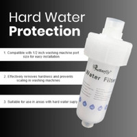 Sporting an efficient sediment filter, this cartridge efficiently removes dirt, parasites, and other particles. The inbuilt impurity adsorption mechanism captures unwanted sediments, ensuring the water flowing into your washing machine is free from harmful contaminants. With the butterfly water filter included, this feature keeps your machine’s internal components protected, contributing to its overall performance.