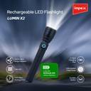 IMPEX LUMIN X2 Rechargeable LED Flashlight | Aircraft Aluminium | Long Range Beam Torch (Black, Blue, 20 cm, Rechargeable)