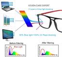 Blue cut glasses feature a special coating that reflects harmful blue light and restricts it from passing through the lenses of your eyeglasses. Blue light is emitted from computer and mobile screens and long term exposure to this type of light increases the chances of retinal damage, Blue cut glasses will Protect Your Eyes From Harmful Blue Light from Smart Phones & Computer.