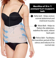 Courtesy of its efficient design, this shapewear offers three-in-one benefits. The belly belt helps restore normal abdominal and mid-level muscles post-pregnancy, while the waist belt flattens the abdomen, redefines the waistline, and helps relieve back pain. The pelvic belt supports a smooth transition for the uterus, helping reduce it to its normal size. This comprehensive support system ensures comfort and recovery during the postpartum period.