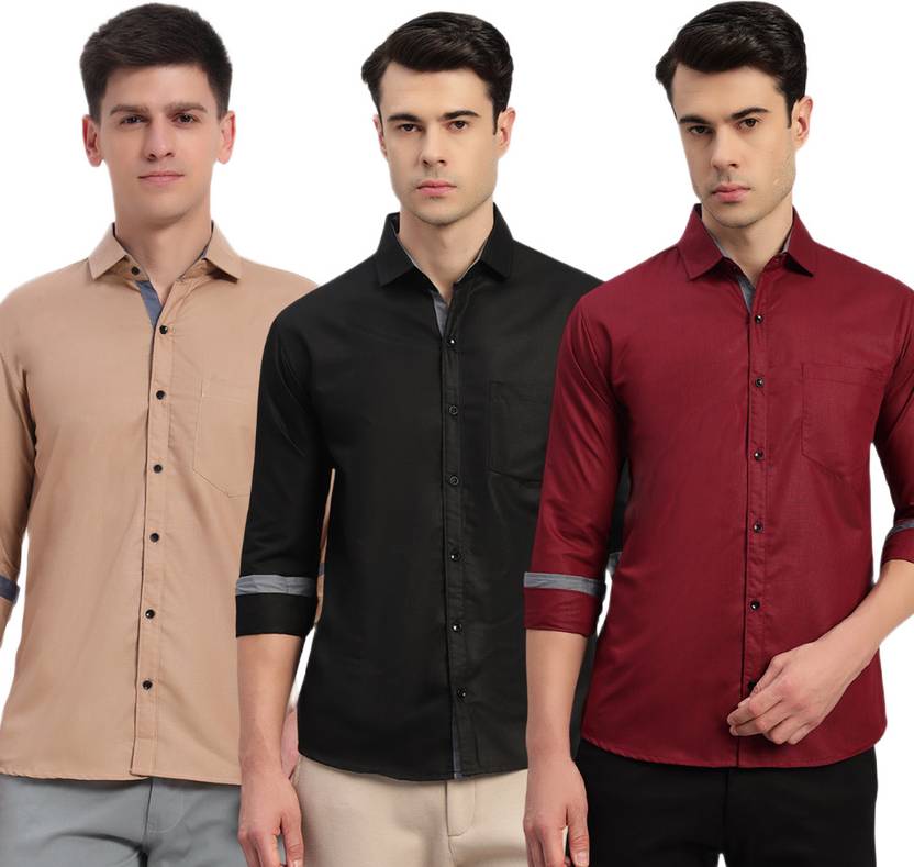 IMPRESIO Men Regular Fit Solid Button Down Collar Casual Shirt (Pack of 3)