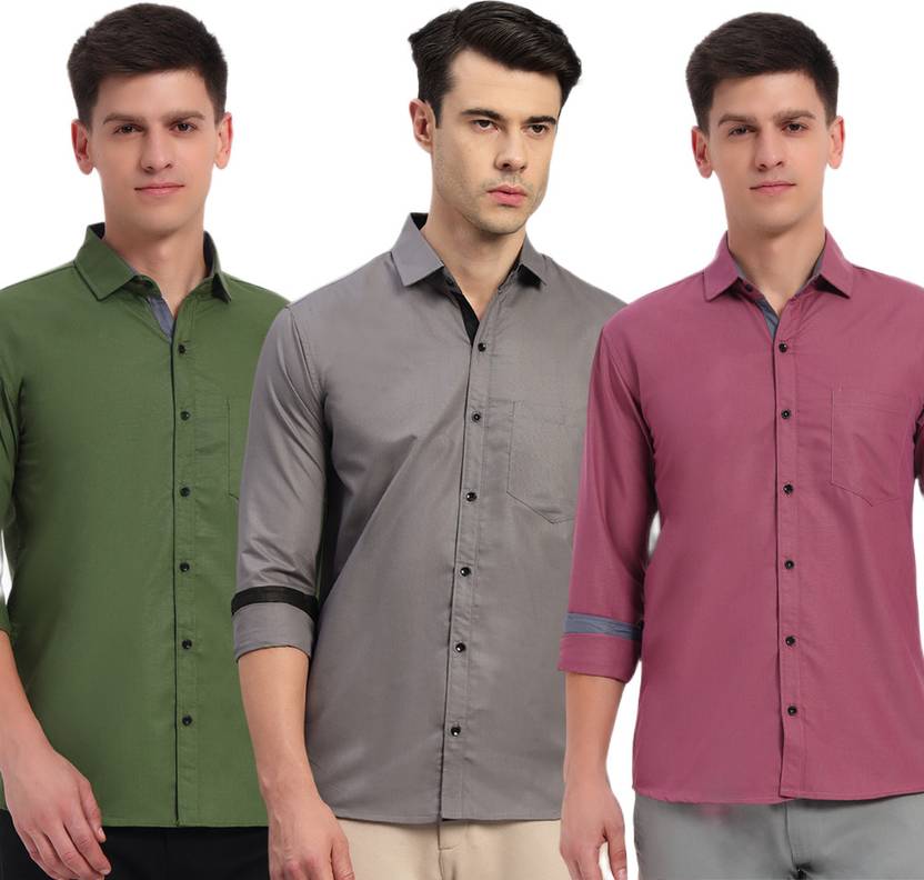 IMPRESIO Men Regular Fit Solid Button Down Collar Casual Shirt (Pack of 3)